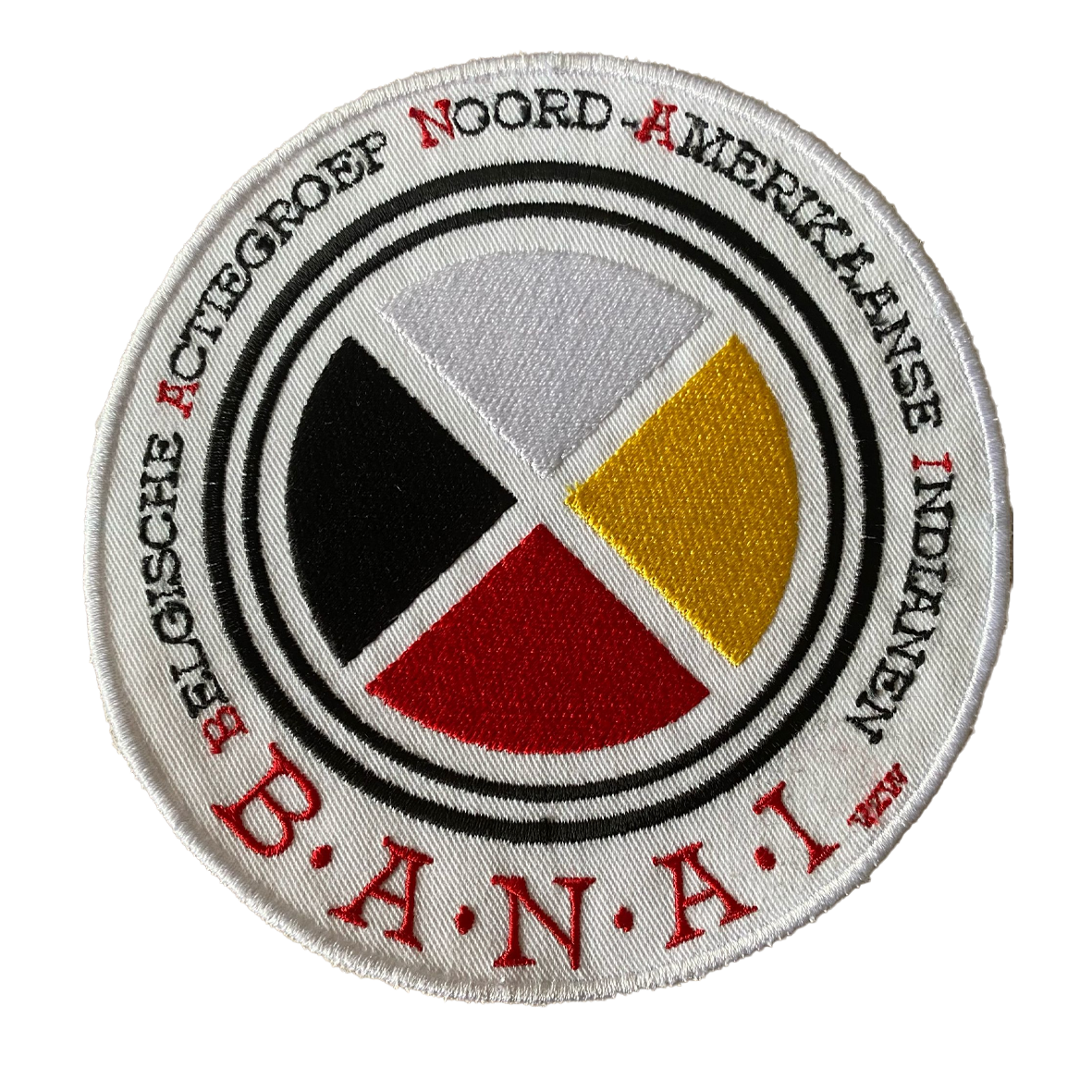 Stevige ronde badge (10 x 10 cm) met het logo van de BANAI vzw. Perfect voor op je jas, tas, rugzak of waar jij maar wilt laten zien dat je de Noord-Amerikaanse inheemse zaak een warm hart toedraagt.